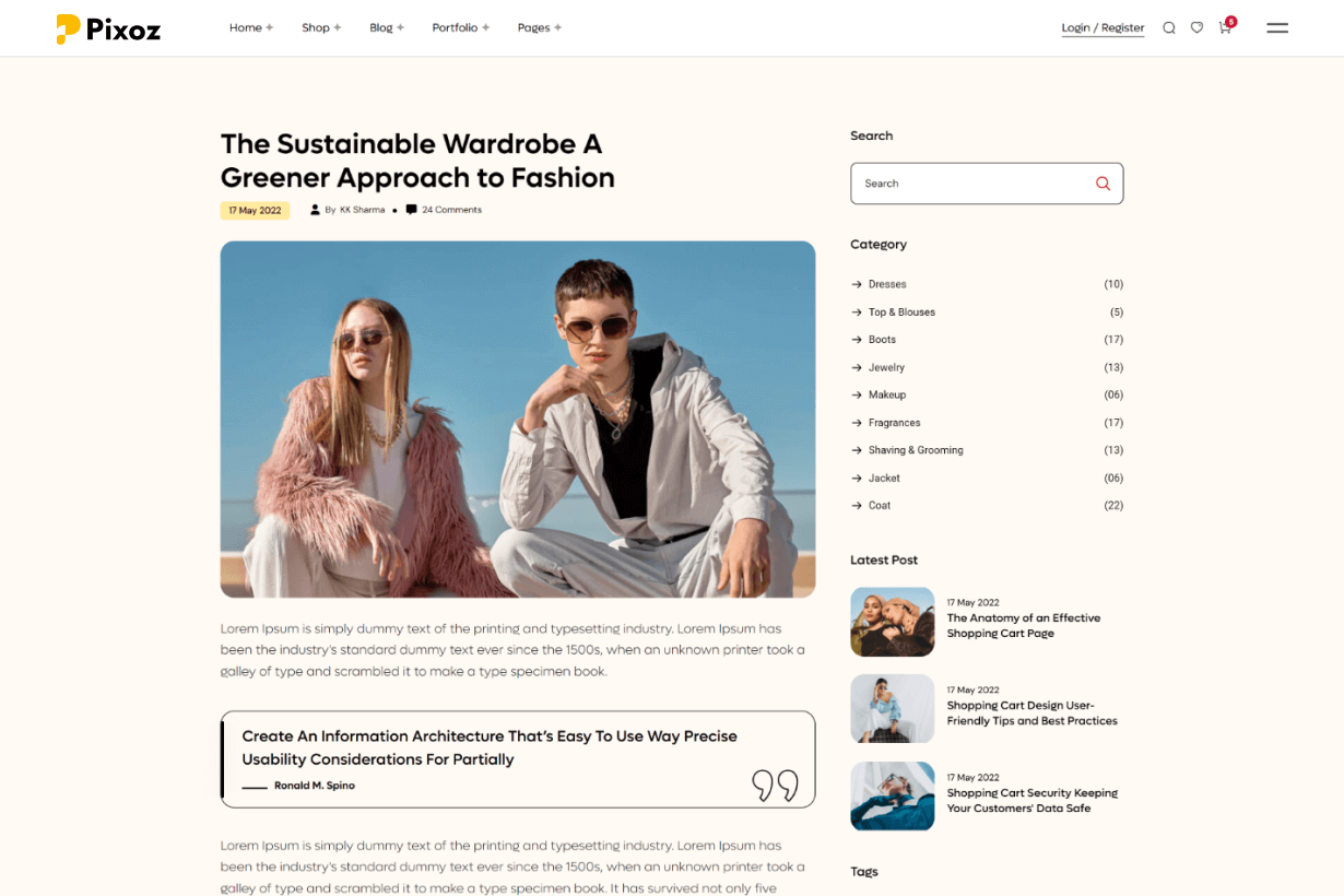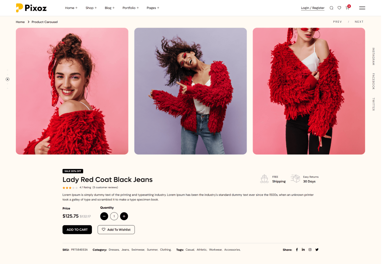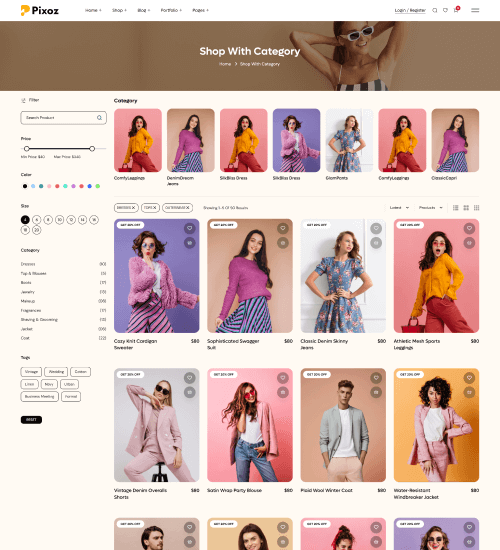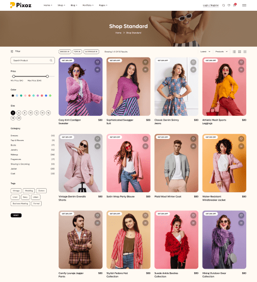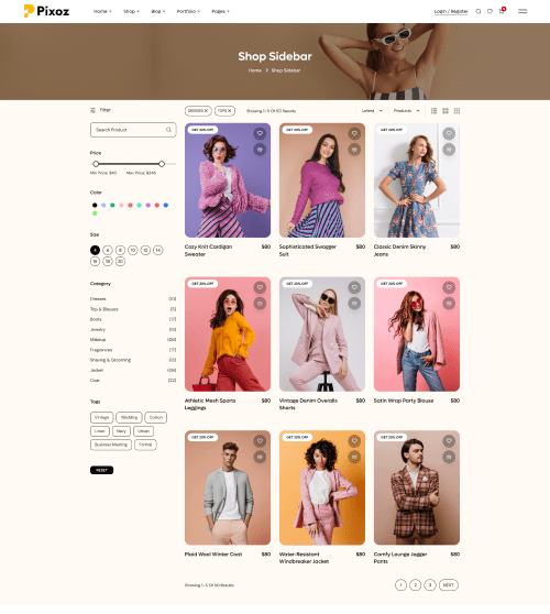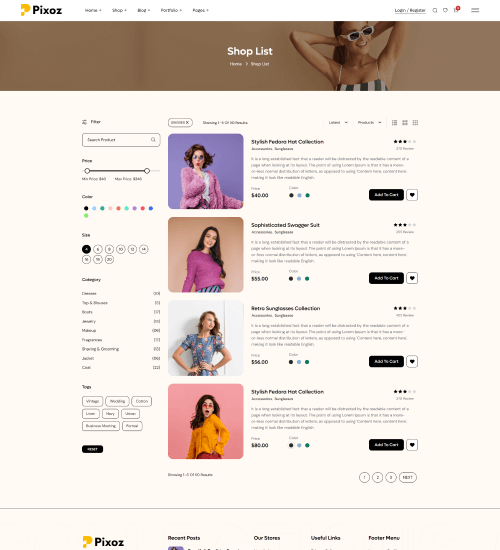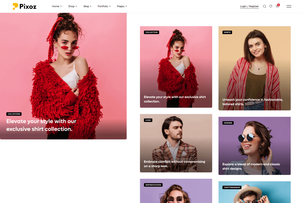 pixozoffers a wide range of features including responsive design, customizable layouts, product catalog pages, shopping cart functionality, checkout pages, user account management, and more.